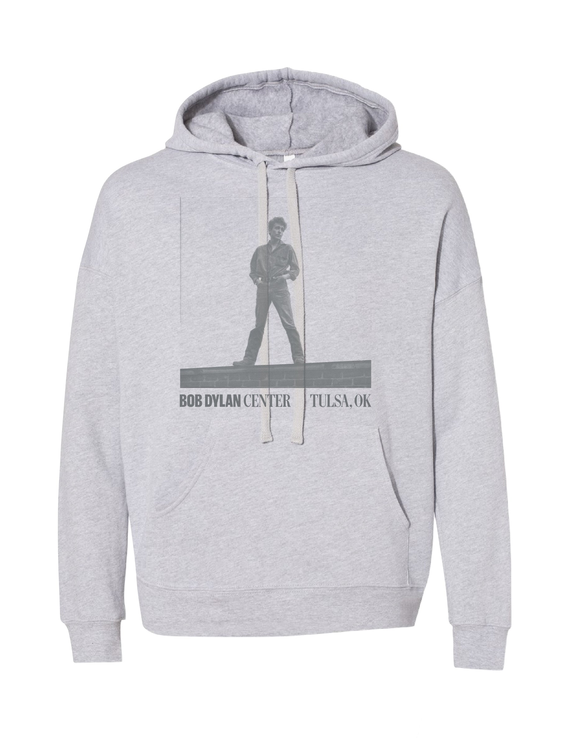 Featuring a image of Bob Dylan taken by an unknown photographer on a New York City rooftop in 1963, this athletic heather hoodie is a must have for fall. Featuring a sponge fleece lining and fashion forward drop shoulder, it'll keep you warm all season long.