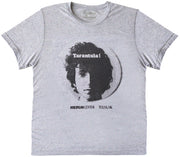 Grey, super soft Canvas tri-blend shirt; with an image of Bob Dylan and the text 'Tarantula' commemorating Dylan's novel of the same name.