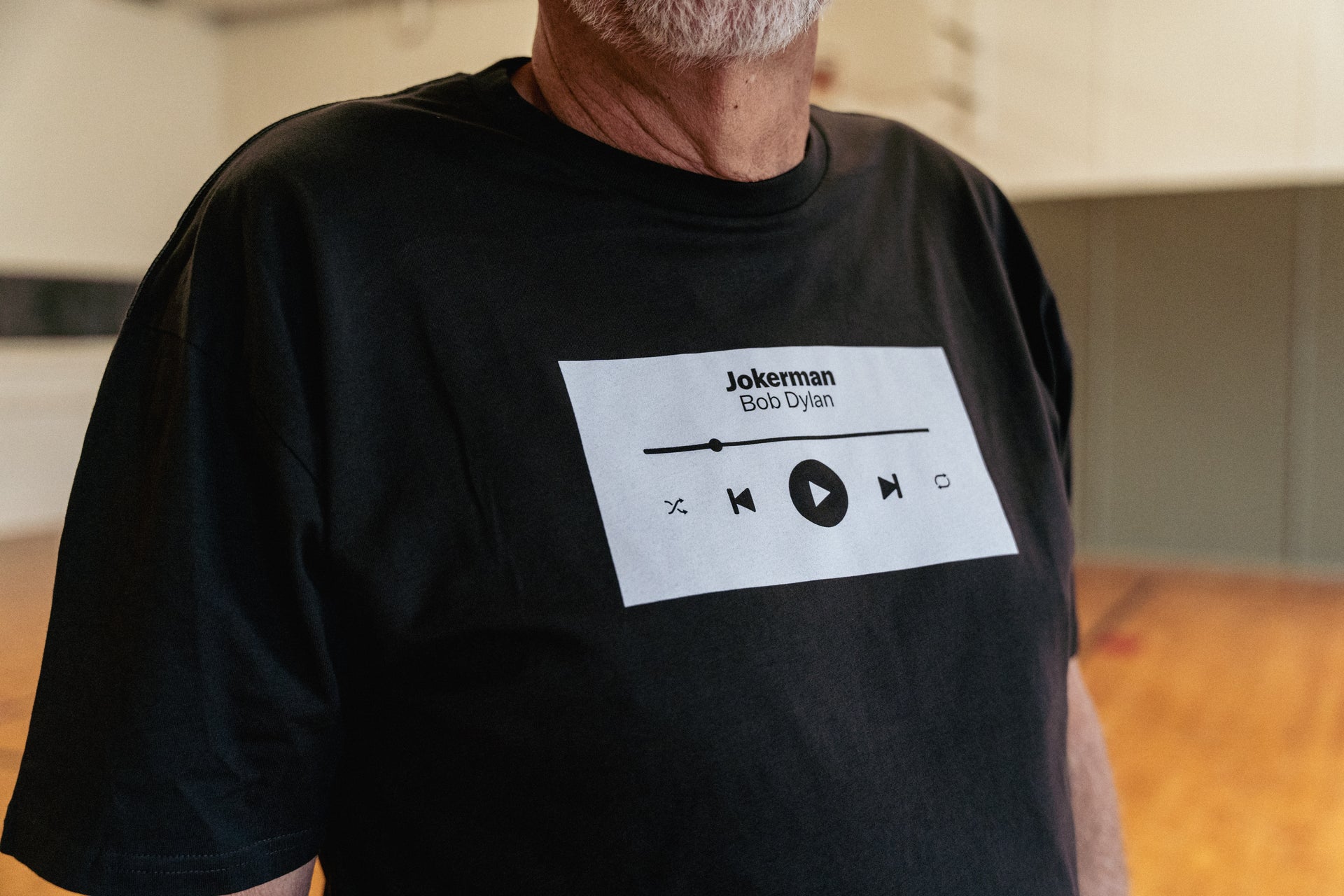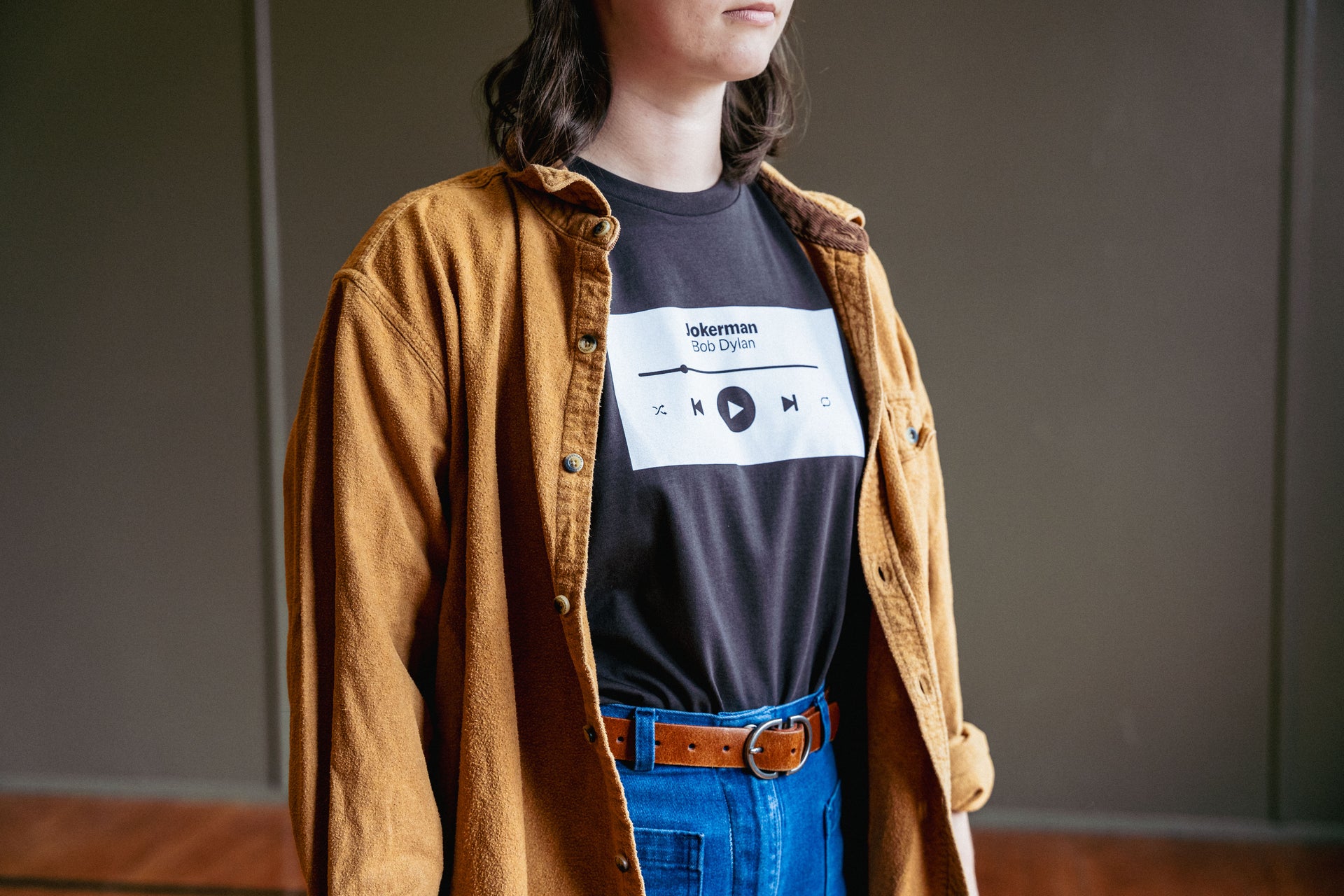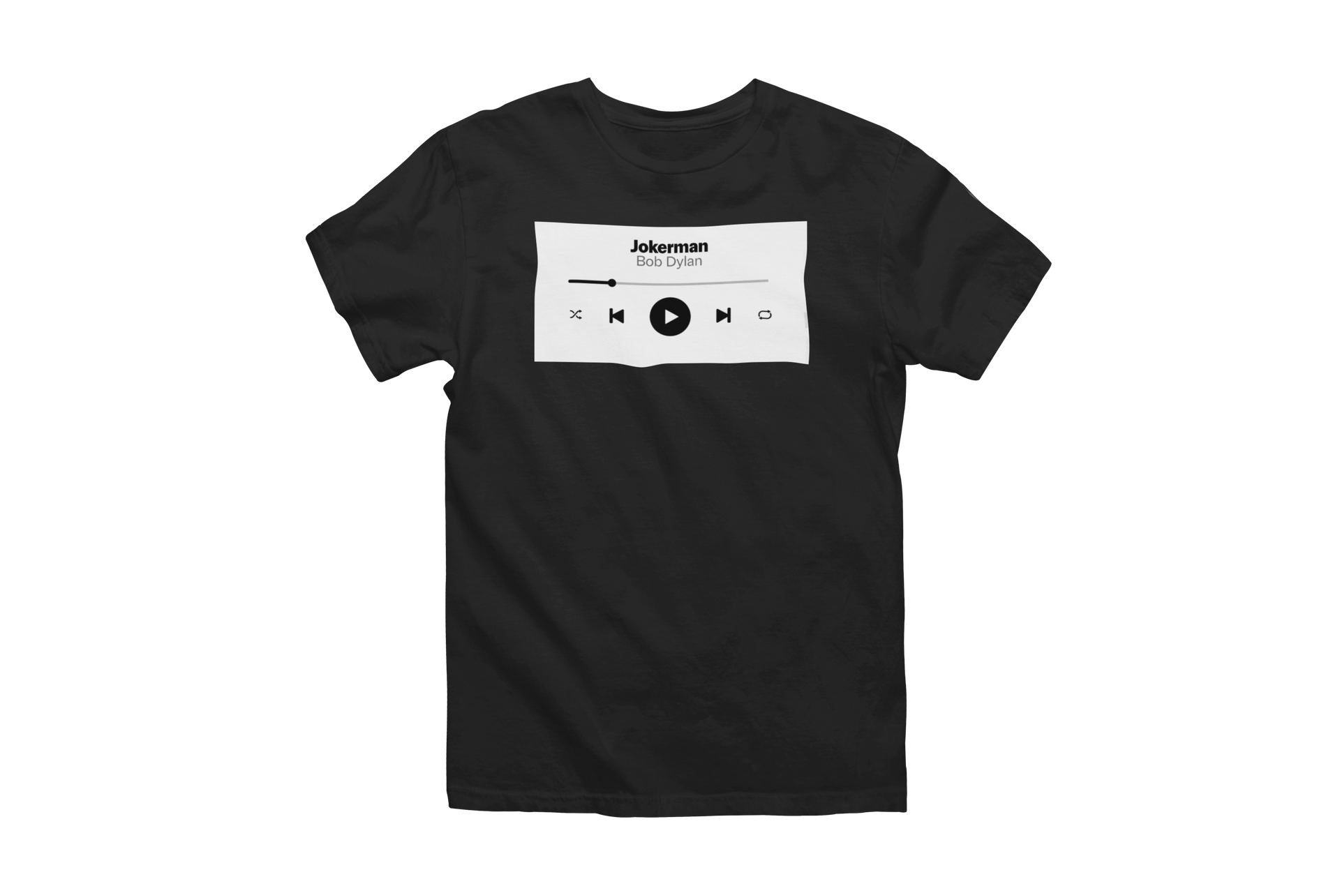 Our Now Playing Jokerman Shirt features one of the six songs featured in the Bob Dylan Center's Columbia Records Gallery: Dylan's 1983 song Jokerman.