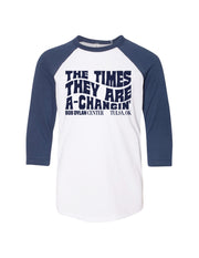 The Times They Are A-Changin'! Your kid will be super cozy up this fall in our incredibly soft Times Are A-Changin' Raglan. This unisex shirt features a three-quarter sleeve and is currently available in navy/white.