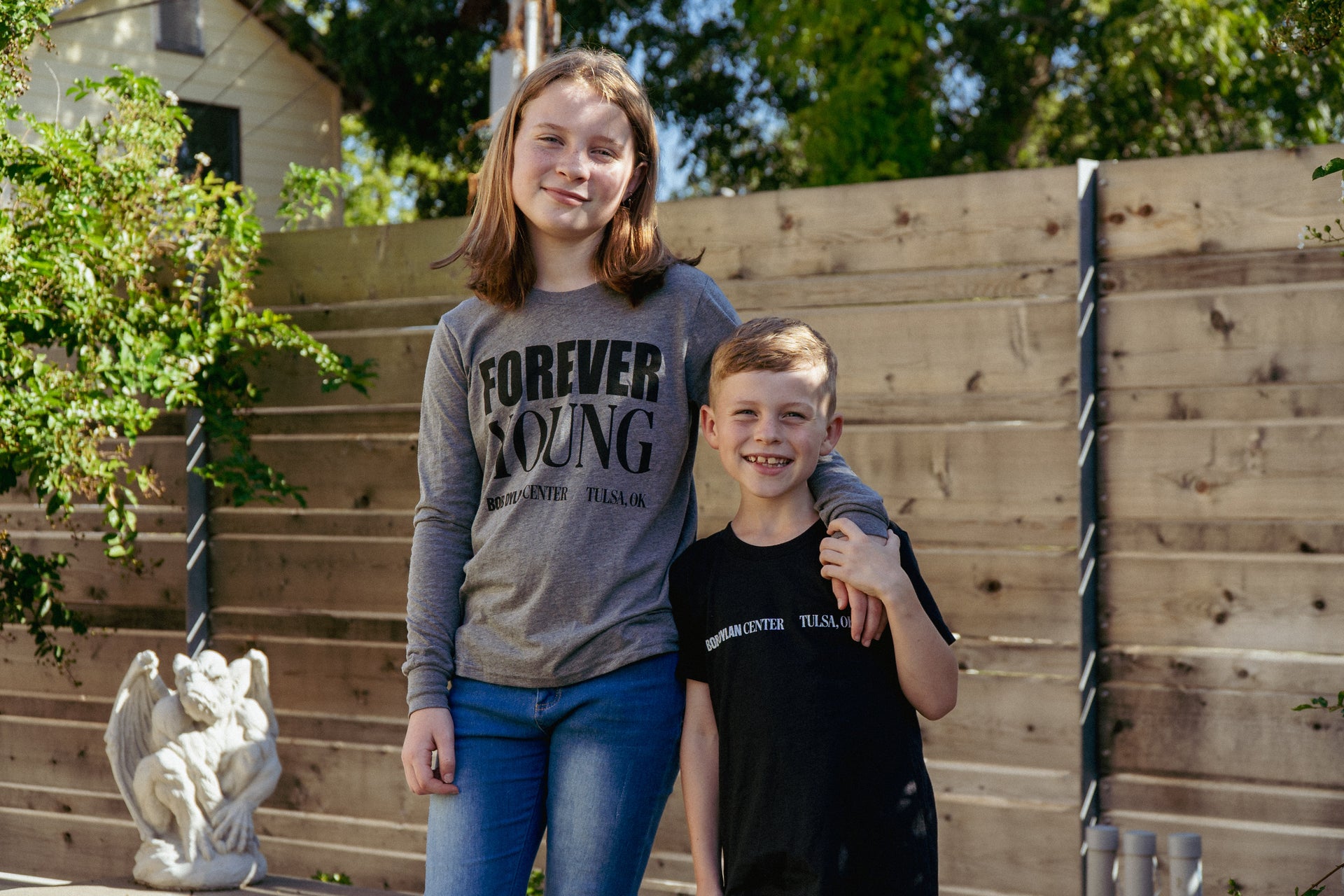 Black heather Bob Dylan Center®Logo Youth Shirt. Bella + Canvas cotton/polyester blend shirt with interior printed tag and the Bob Dylan Center logo.