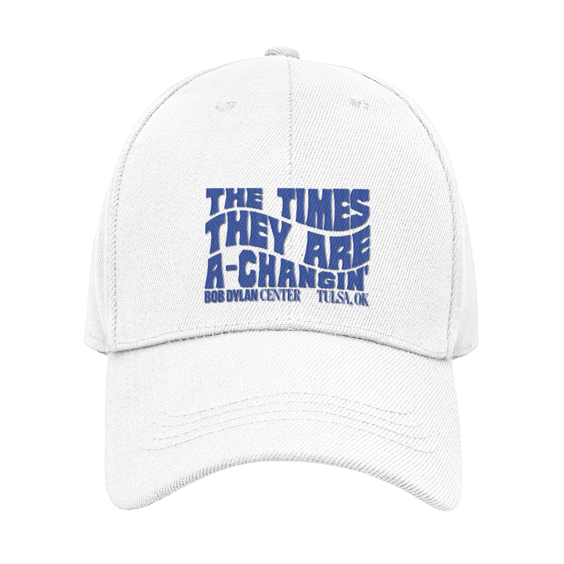 This white unisex dad hat celebrates Bob Dylan's 1964 classic song, The Times They Are A-Changin'. Embroidered in royal blue with the Bob Dylan Center logo.