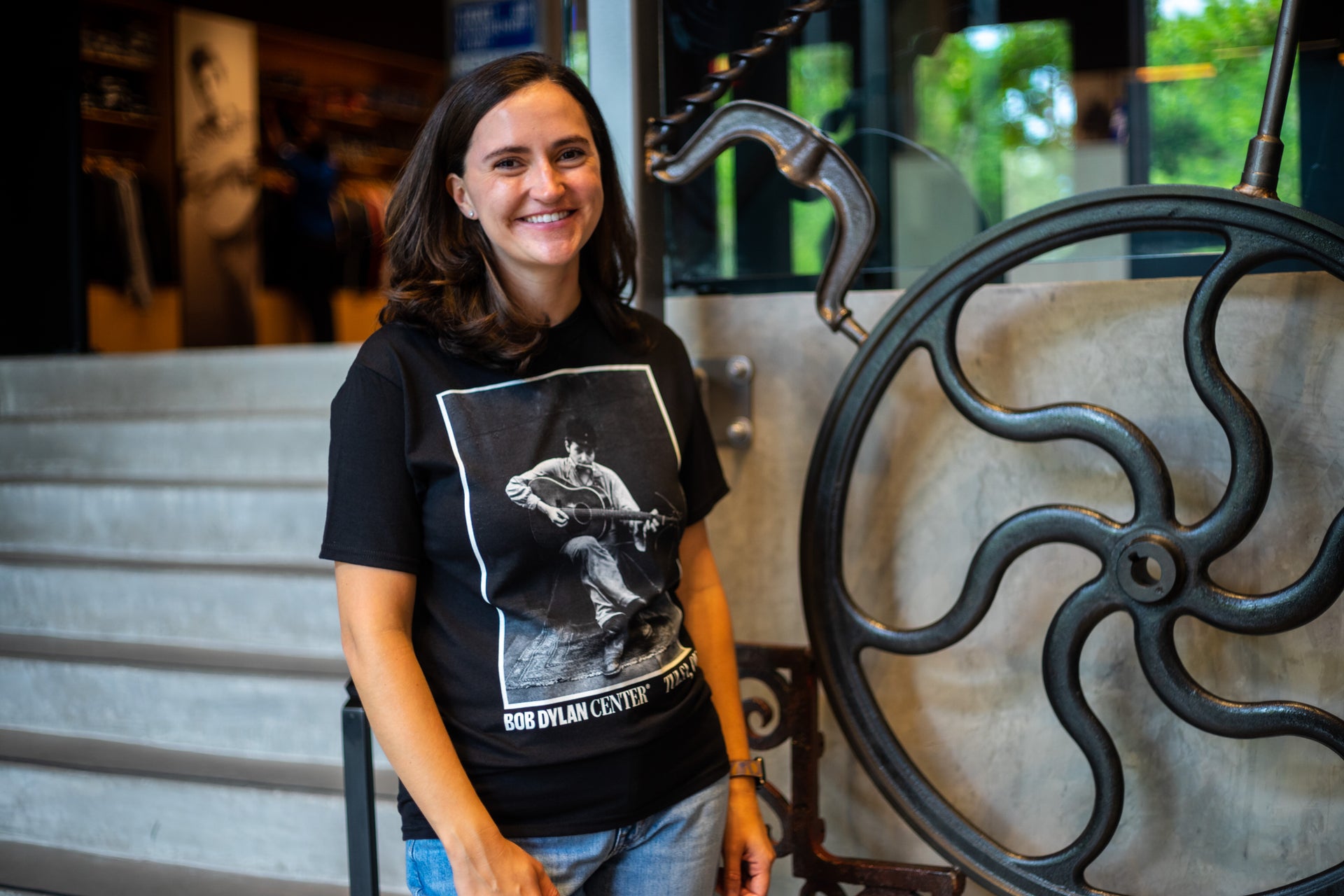 Featuring photographer John Cohen's image of Bob Dylan playing his guitar. 100% cotton, direct-to-garment printed, black shirt with an interior printed tag and the Bob Dylan Center® logo in white.